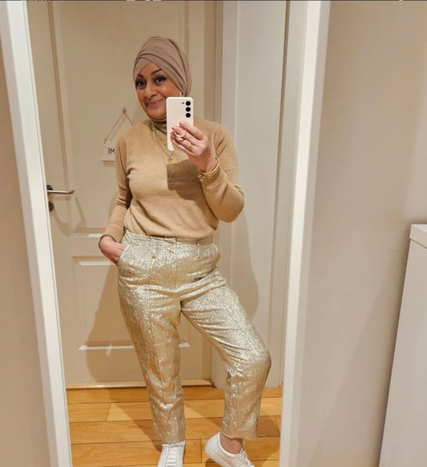 Gold trousers on a grey Tuesday