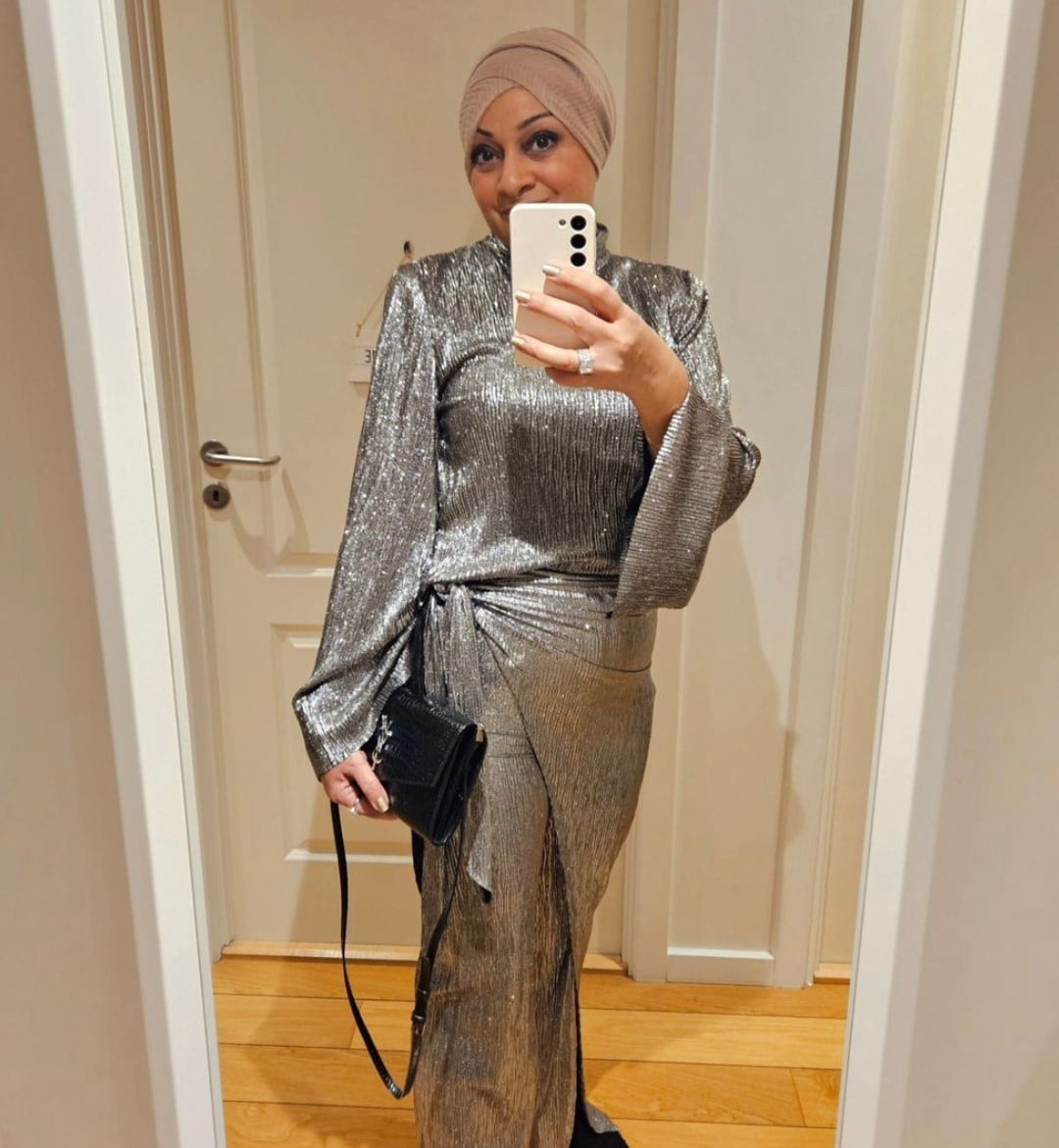 Love a metallic outfit added accessories in a bright